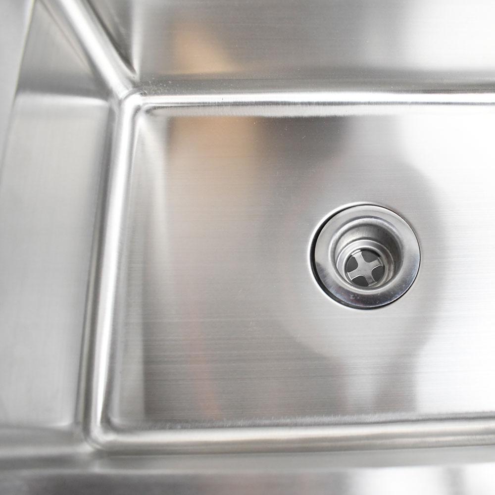 This hand sink is made of high-quality stainless steel This hand sink is constructed from high-quality 18-gauge, 304 stainless steel, ensuring longevity and resistance to corrosion.